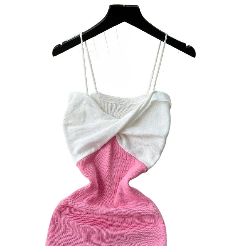 2025 New Dress Summer High Sensibility Halter Strap Spice Girl Bag Hip Dress
